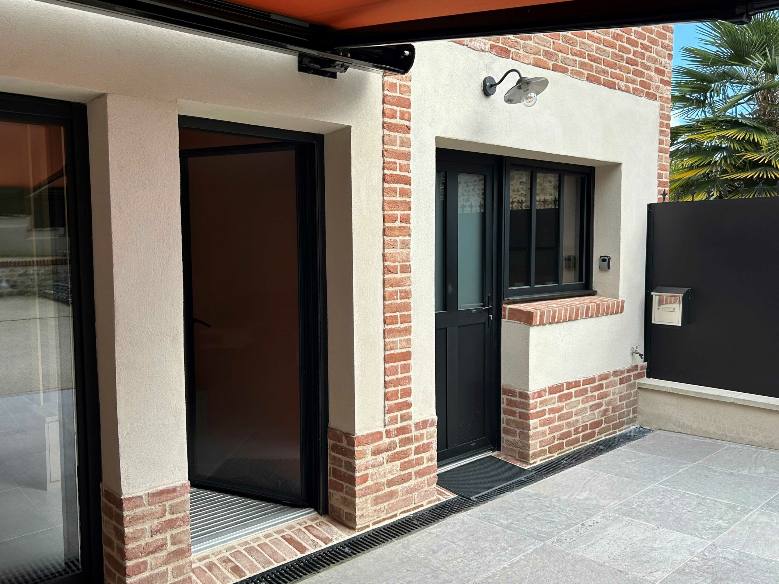 À l’extérieur, la façade a été repensée en mélangeant briques apparentes et enduit clair, pour un style à la fois authentique et résolument actuel.